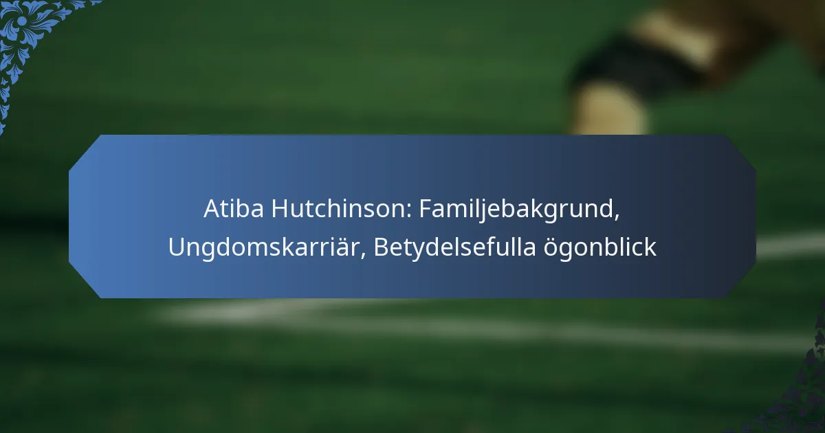Atiba Hutchinsons resa inom fotbollen är djupt påverkad av hans stödjande familjebakgrund, som främjade hans engagemang för sporten från en ung ålder. Hans ungdomskarriär gav honom viktiga färdigheter och erfarenheter som banade väg för hans professionella framgång. Under sin karriär har Hutchinson uppnått betydande milstolpar som visar hans motståndskraft och påverkan på både klubb- och internationell fotboll.